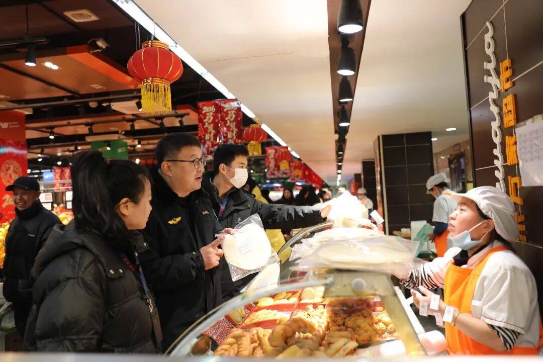 图为宁安市纪委监委结合市市场局深切年货大集等开展专项监视,压实监管义务,改正“四风”问题,以精准监视护航春节市场平安有序、风清气正。 (白璐菲 摄)。
