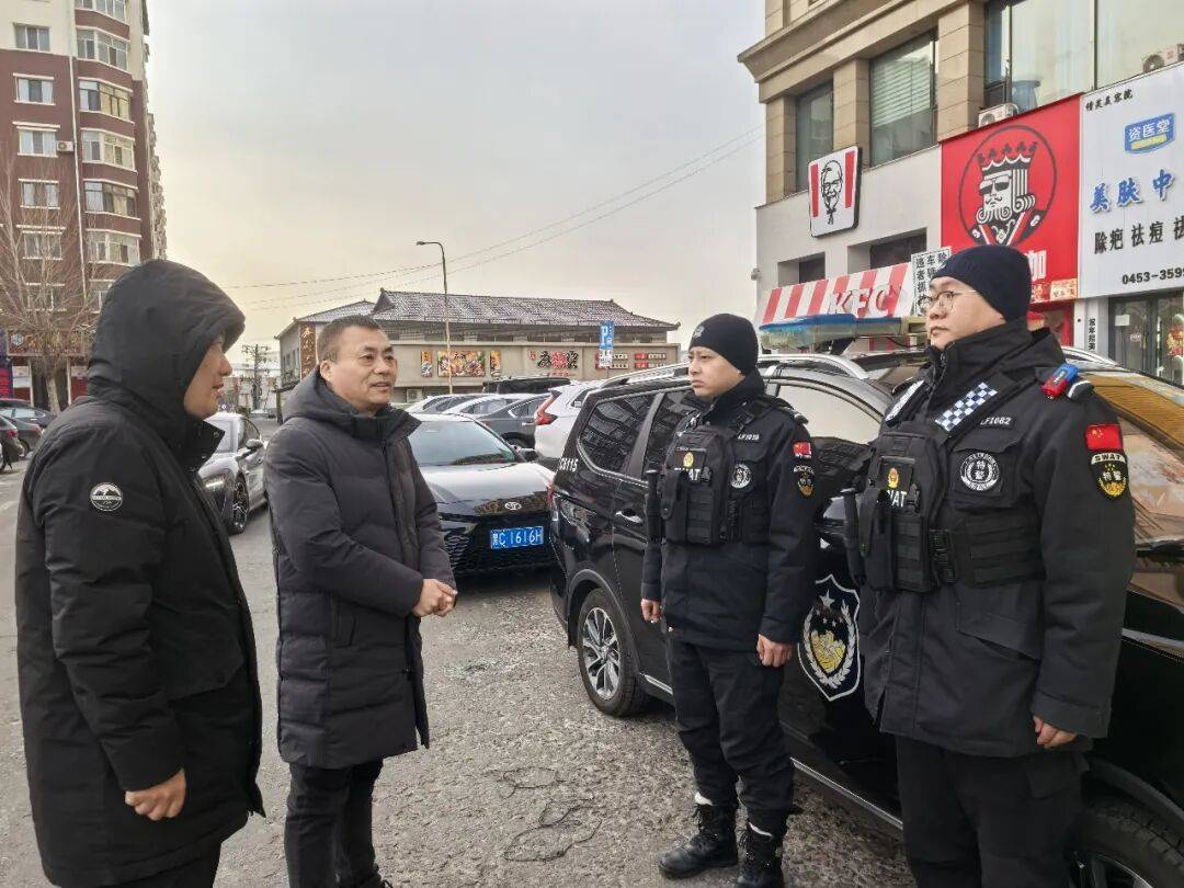 图为林口县纪委监委紧盯节日平安,深切年货大集、农贸市场等实地领会执勤值守、巡查防控、值班备勤等环境,督促相关部分落实节日安保勤务,确保春节期间社会治安不变、群众过节。 (王 菲 摄)。